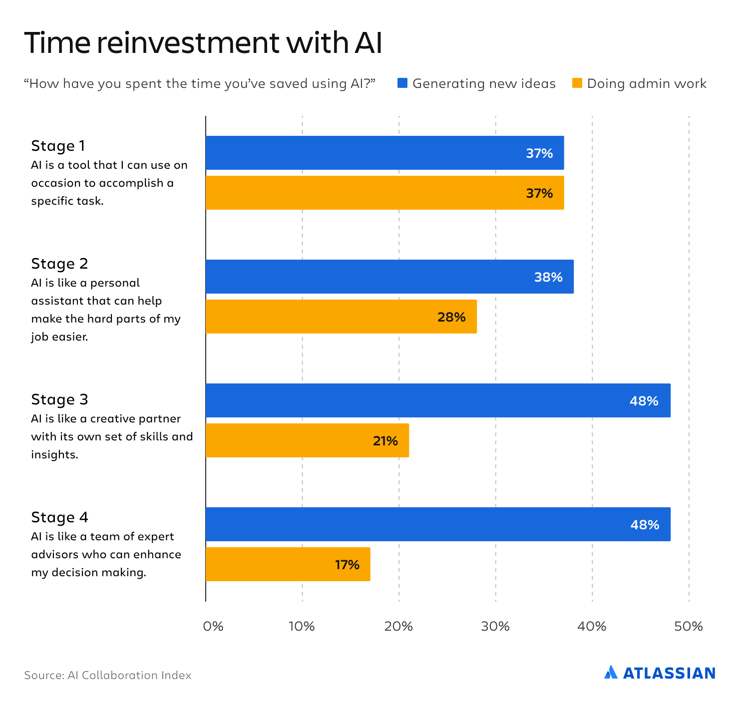 For our AI Collaboration Report survey, we asked participants to report how they think about and work with AI.