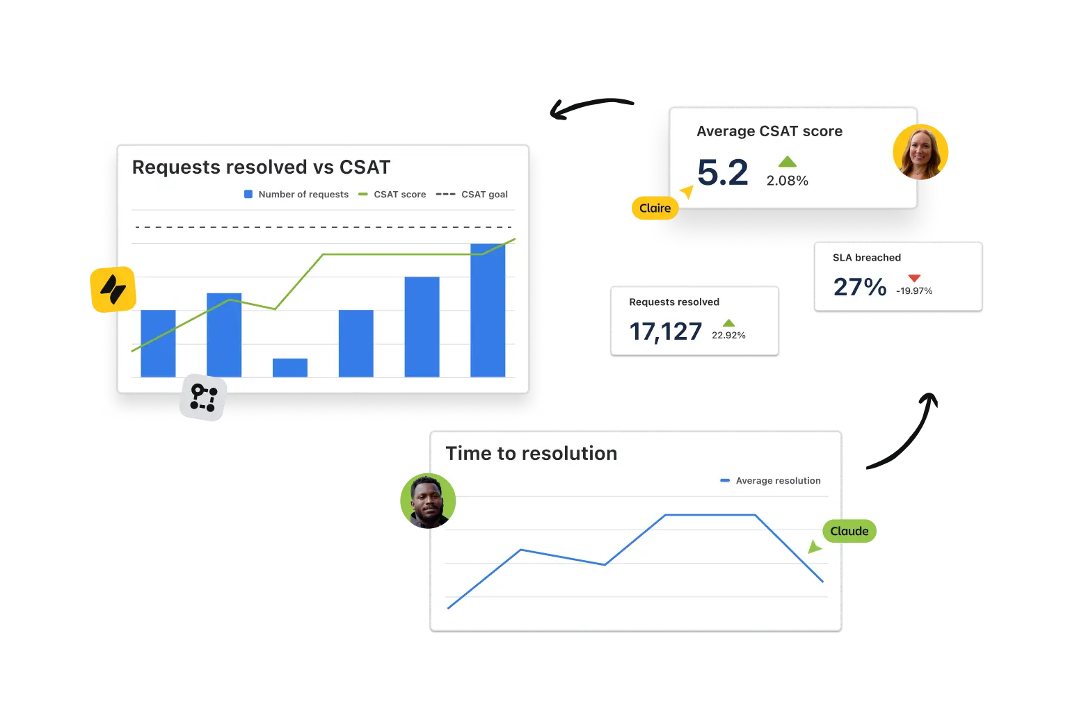 Donnez aux équipes les moyens d'agir grâce à des informations clés intégrées dans les workflows où elles collaborent déjà, et offrez aux dirigeants une visibilité sur des métriques fiables qui permettent de maintenir les initiatives critiques sur la bonne voie.